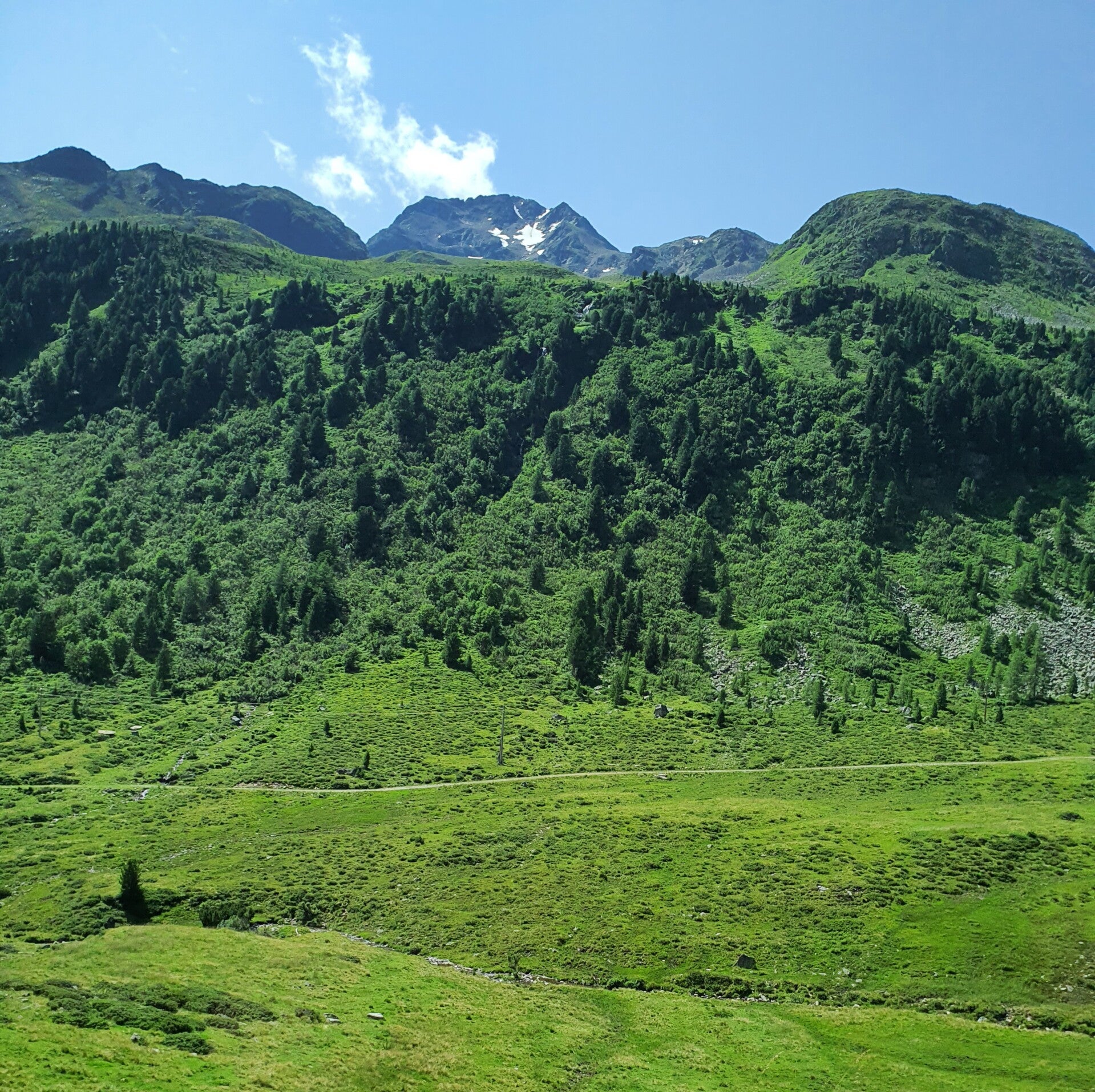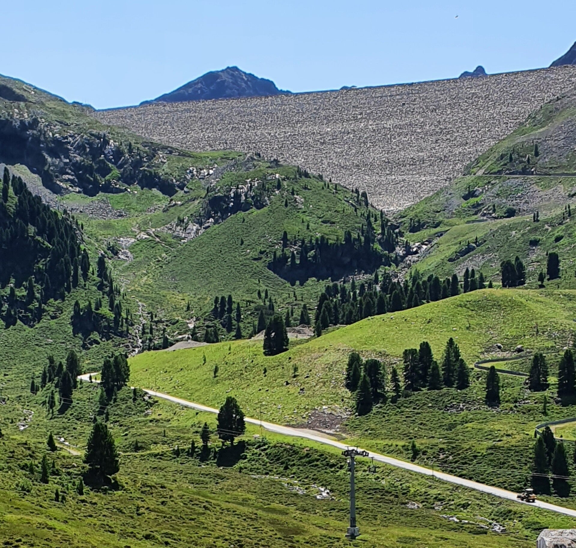 Kurz nach Innsbruck verliess der Chauffeur die Autobahn und lenkte den Car durch kleine Dörfer in Richtung Kühtai-Alpenstrasse mit der überraschenden Durchsage, dass man noch eine sehenswerte Zusatzschlaufe einbaue, und ins Sommer- und Winterdestinationsgebiet "KÜHTAI" auf 2020 M.ü.M. fahre. Auf der Passhöhe könne man eine gutbürgerliche Mittagsverpflegung [fakultativ] geniessen, danach einen kleinen Spaziergang unternehmen und gleichzeitig die eindrucksvolle Bergwelt geniessen. Die Reisegesellschaft zeigt sich sehr erfreut über die Durchsage. -